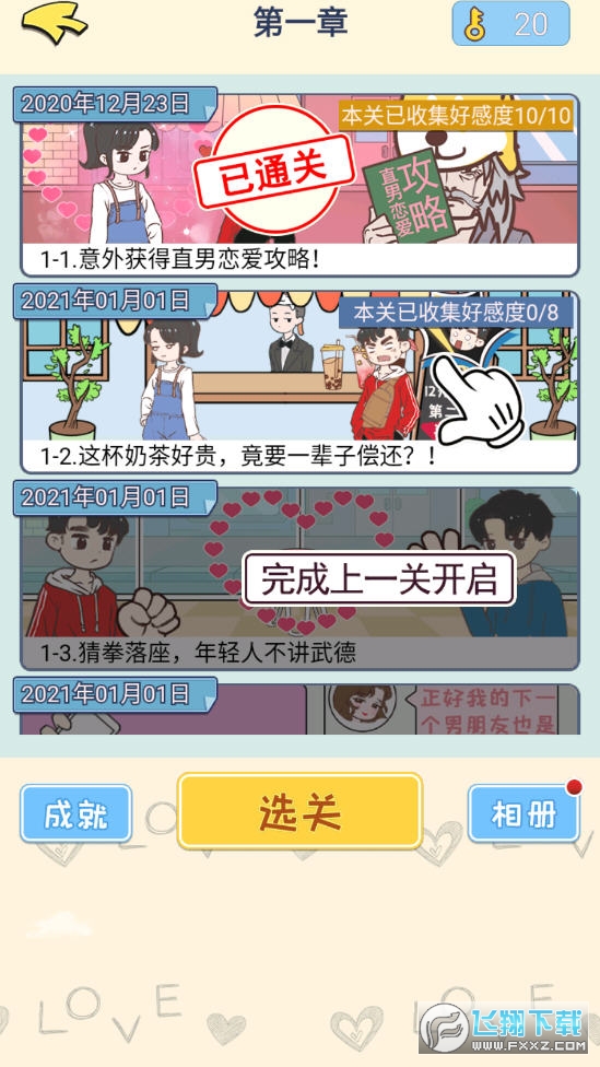 1、感受爆笑的直男恋爱,还有隐藏的相册和彩蛋等你收集,解锁今日份甜蜜2、超多创意玩法元素,感受指尖的换了闯关和冒险3、的手绘画面,附带巨多热门的梗吗,给你带来沙雕式的恋爱模式