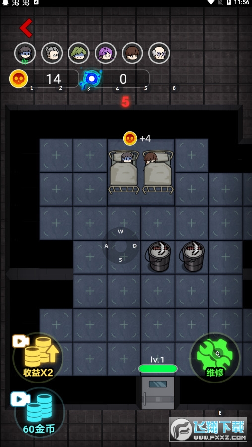 3.门升级技能:游戏中门升级也很熟练,因为凶猛的鬼魂在攻击时会减少门的血量。当血容量几乎不足时,升级门可以瞬间填满血容量,让你可以继续抵抗凶猛鬼魂的攻击,然后继续发展自己的武器;