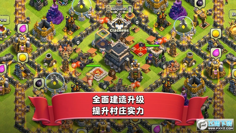 使用加农炮、箭塔、迫击炮、城墙和陷阱等防御设施保卫村庄。