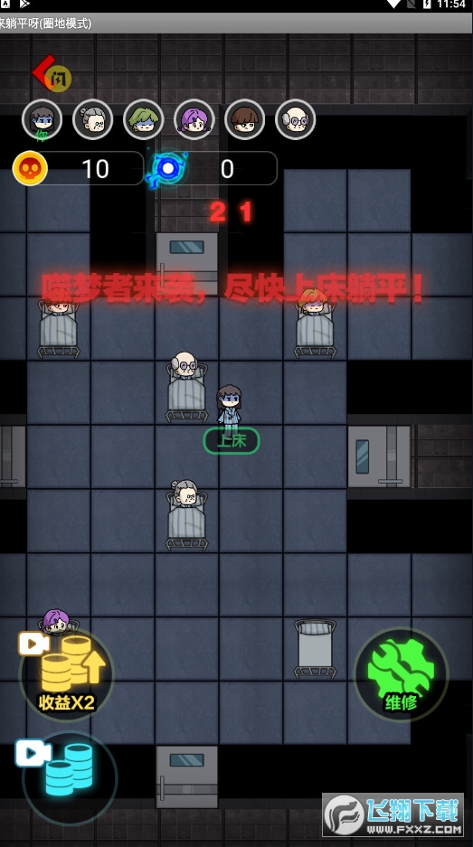 开局任意挑选一个宿舍,不用在乎倒计时,在鬼出来前都是固定给30金币,进房间后第一时间升级床到2级,并2级铁门。