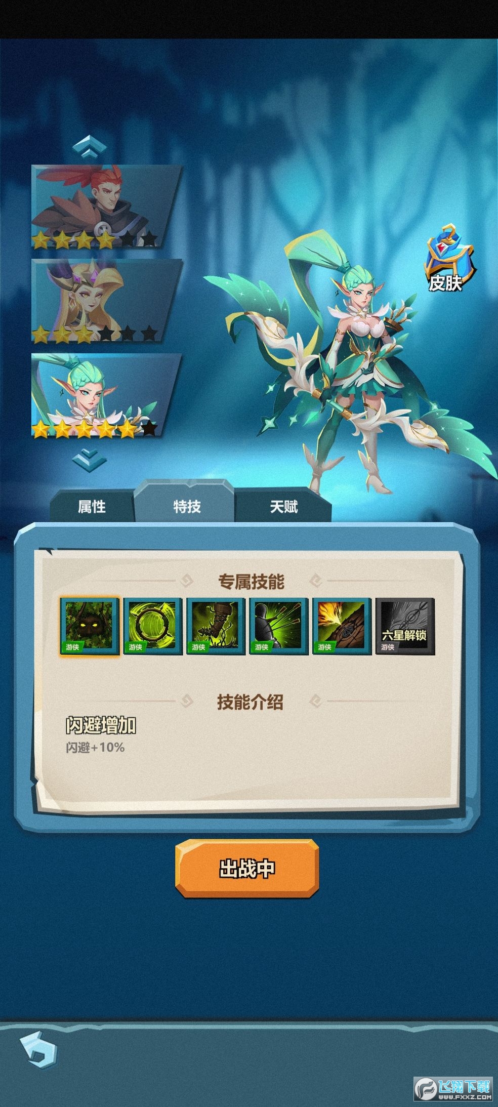 3.目前版本想走得更远,就是靠闪避,1星射手自带10%闪避,加上述技能,常驻闪避是80%,触发超级闪避后就是100%。但是,常驻80%是不够看的,300关以后的小怪普通攻击都能秒人,所以我们还需要随机成长技能,就是靠刷脸,看看随机成长能有多少到闪避上面,目前见过最高的是19%,加上常驻的80%,就是99%的闪避。