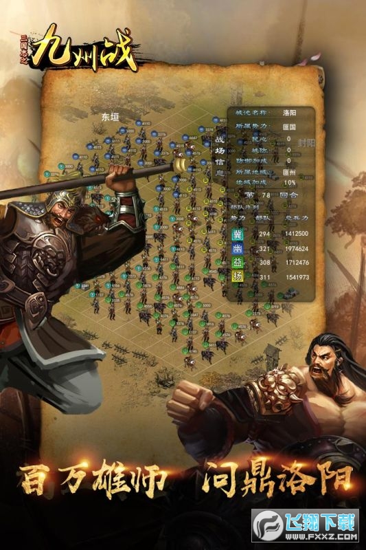 《九州战》是一款以三国时代文化为背景,精美细致的画面风格、真实细腻的游戏场景、恢宏壮阔的战争场面,真实还原三国地图和名将,实现十万部队同屏作战,结合建设与战斗策略为一体的策略类手机网络游戏。