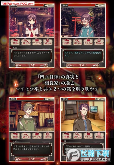 四目神中文安卓版中,佐原真依跟着父亲一起回到了深山山村的家乡,在家乡的四目神社里,遇到了一个奇怪的少年。一款日式的灵异解谜类的手游,游戏偏叙述向和场景搜索向,由于日本特殊的文化习惯,玩这些游戏会感觉到有些异样和不可理解的东西。少年说:“不要碰我”“为什么?”“因为,会变得不幸……”四目神社隐藏的真相究竟是什么?你能从这个破旧的神社中找出真相?那还在等什么?喜欢灵异解谜系列游戏的玩家们不要错过了哟!