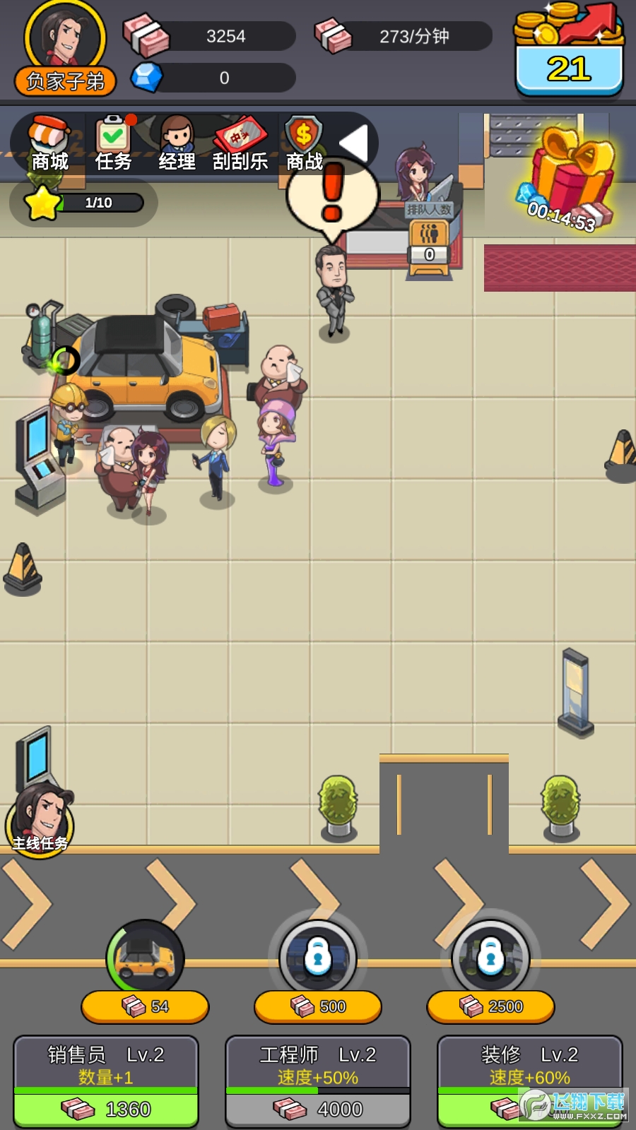 《赚钱当首富》是一款模拟经营的类游戏。在游戏中,玩家在富婆的帮助下开了一家汽车厂,后续逐步解锁、电子厂、古玩店,全球顶级富豪与你共同竞争首富排行榜,赚钱收购他们的资产,并成立集团公司,成为世界首富。