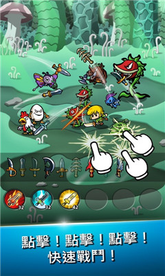 收集各种资源,打败各种关卡敌人,让你的剑到处自由探索,找到隐藏的宝物,操作非常简单,点击攻击可以加速,快速完成。