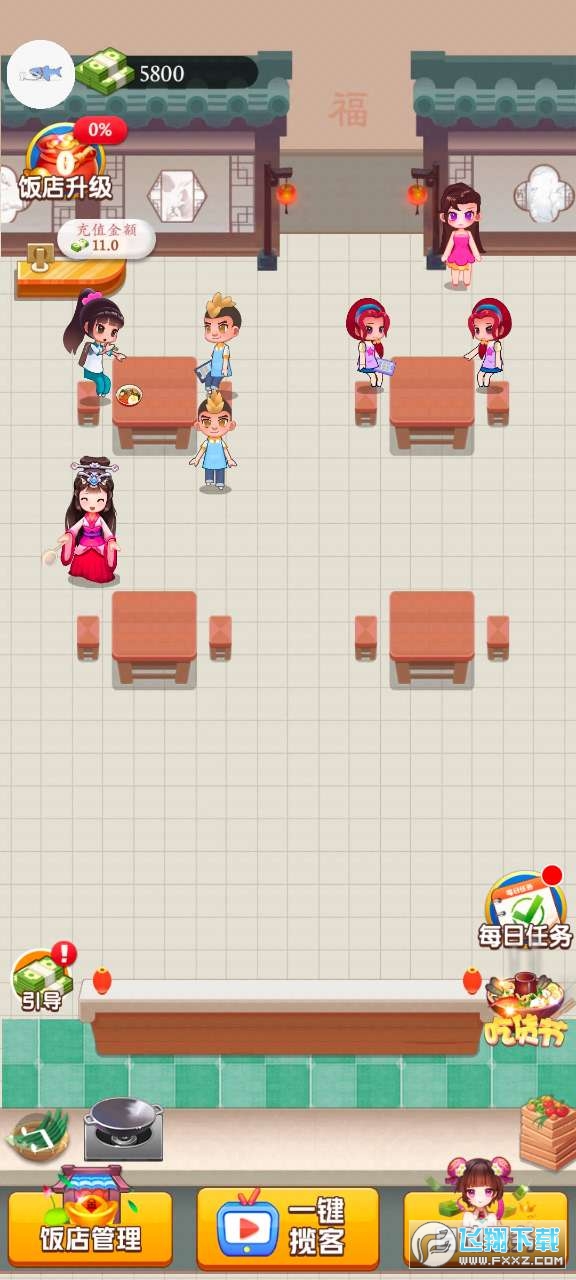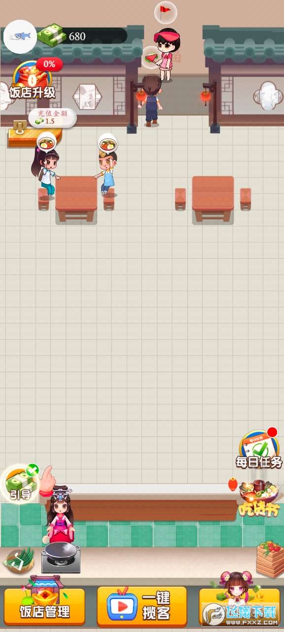 1、每天登录领取奖励,解锁更多餐厅设施;