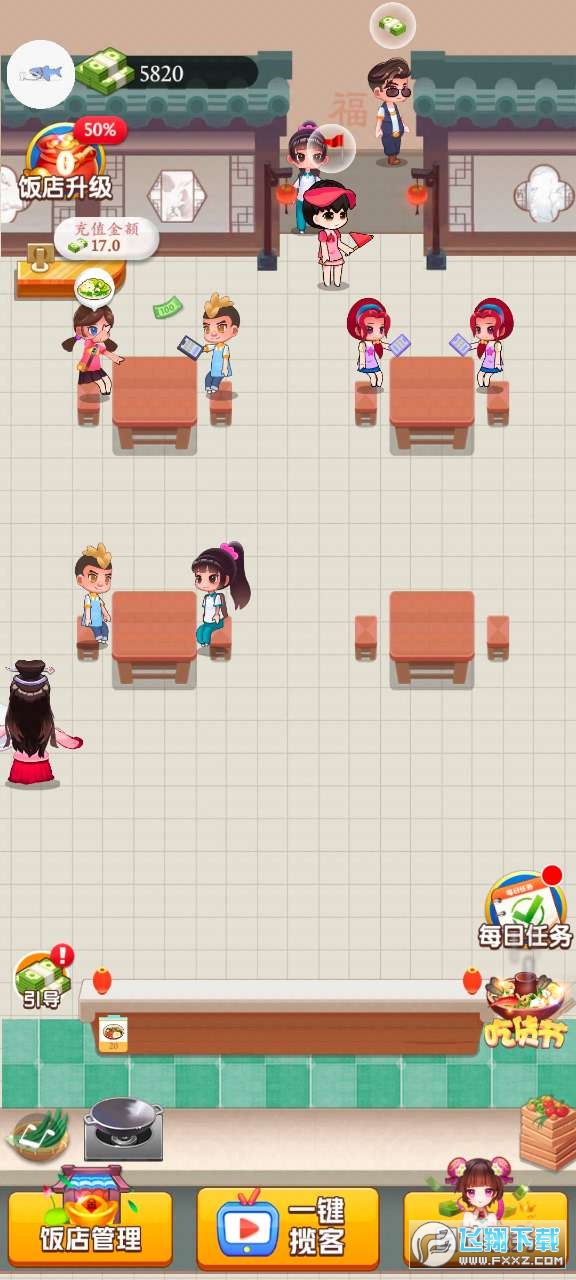 玩转餐厅游戏是很有趣的餐厅小游戏,开一间小小的餐厅,不断的去研制出新的,让更多的顾客来你的餐厅,不断的扩大规模。