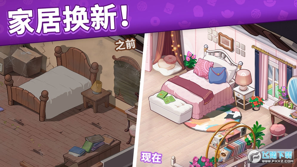 通关关卡获得装饰道具,在各种不同风格的装饰品中自由搭配。个性化的店内布置,每个人都可搭配出自己的专属空间。