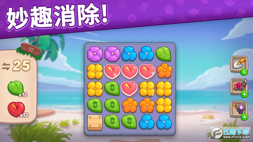 花儿爱消除游戏与传统的三消类游戏不同,只需2个以上的相同元素即可进行消除,各种不同的通关条件及功能道具,给予玩家更多的挑战和乐趣。