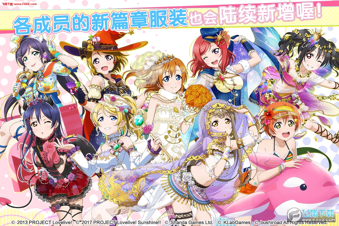 一起引导演唱会走向成功! 特色的演唱会模式 在演唱会模式中伴随着歌曲点击画面 操作简单的节奏打击游戏 收录了10首以上μ's的歌曲 原创组合 以μ's的9位成员为首,各类成员都将会登场 挑选心仪的成员,组成您自己的组合吧! 成员和养成 收集到的成员通过训练使其成长 成长越高在演唱会模式中获得的分数就越高 全程语音的主线剧情 主线剧情将由μ's的9位成员一起出演 原创剧情将全程语音哟! 每个成员的支线剧情 羁绊的加深将解开各成员专有的支线剧情 μ's的成员专属剧情当然也是全程语音!