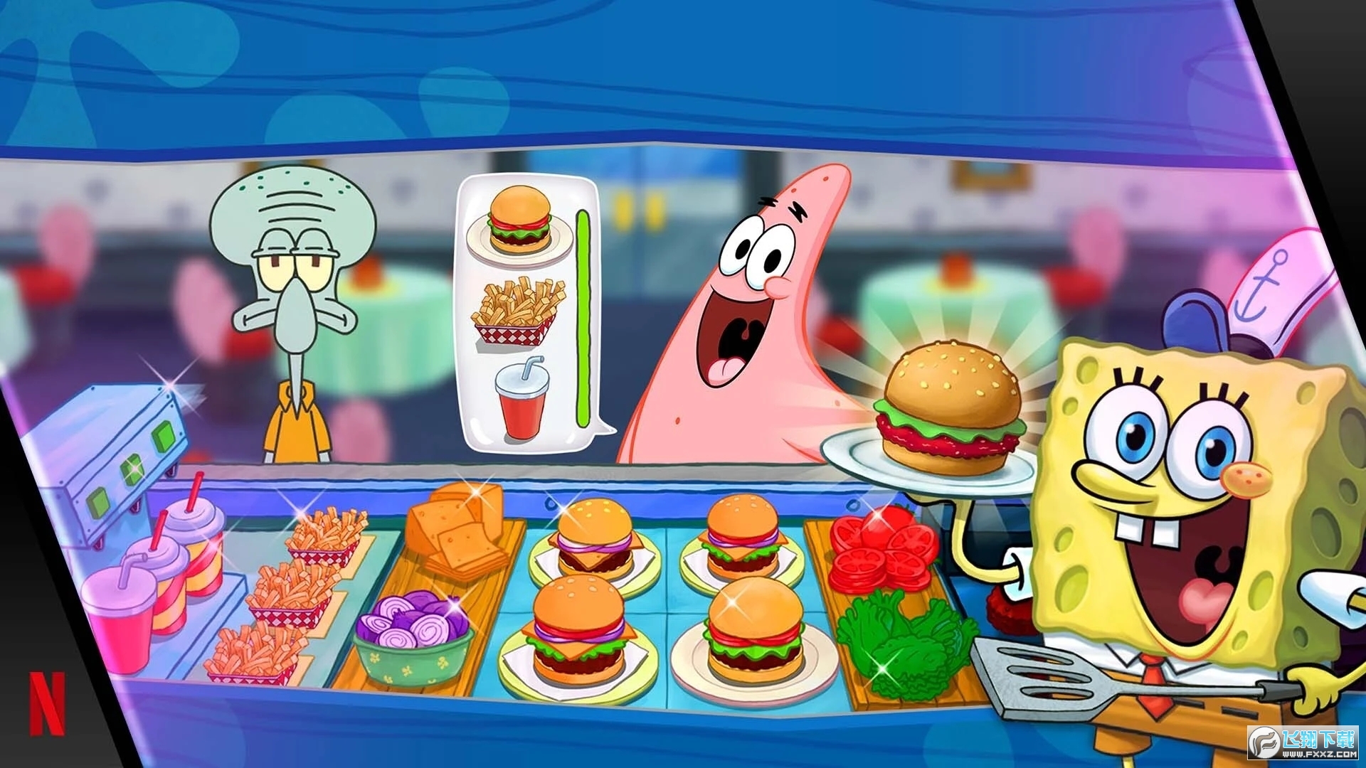 3、海绵宝宝题材的烹饪模拟游戏,画风世界,增加游戏乐趣;