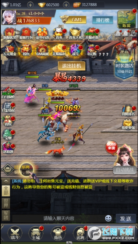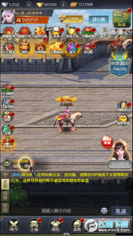 ★上线福利:GM1、送神将貂蝉,百连招募,300万绑元,一亿银两