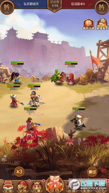 2. 神黄月英、神关羽、神姜维最大程度控制对手,延长战斗回合数,发挥恐慌伤害的最大效果