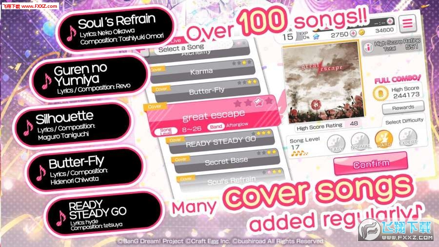 动漫音乐游戏《BanG Dream!》女孩带聚会!,是一个令人兴奋的游戏与简单的控制!配合超过100首歌曲的节奏,包括原创游戏歌曲和翻唱的日本流行动漫/游戏歌曲,如《Kimi no kioku》、《Reach Out to the Truth》、《Life Will Change》等,以及其他翻唱歌曲如《剪影》、《Butter-Fly》、《Guren no Yumiya》、《Soul’s叠句》等。**谷歌发挥最佳2017 -大奖的球员的选择游戏和有吸引力的游戏**在日本在游戏中与5个魅力四射的女子乐队一起表演!具有Poppin 'Party和玫瑰从动画邦梦!和游戏原创乐队,余辉,柔和的调色板,和你好,幸福的世界!