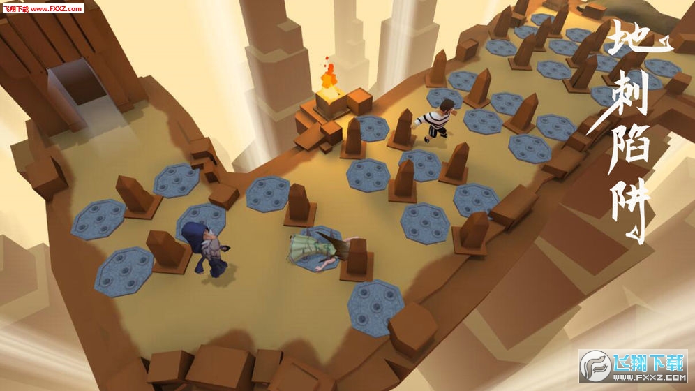 地刺陷阱是急需配合的关卡:每次开局会固定随机好每排的地刺,规则是:每排只有一个地刺会戳出。所以跟着队友逐步前进是通关的关键。火焰山的玩法是:当旁边的石柱变成红色的时候,请不要移动,不然招雷劈哦~