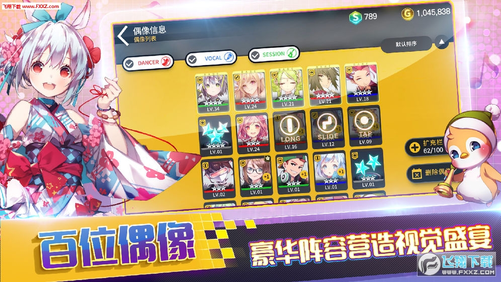 五个种族数百位练习生,专属偶像技能队长应援技能,悉心搭配打造属于你自己的偶像团体。