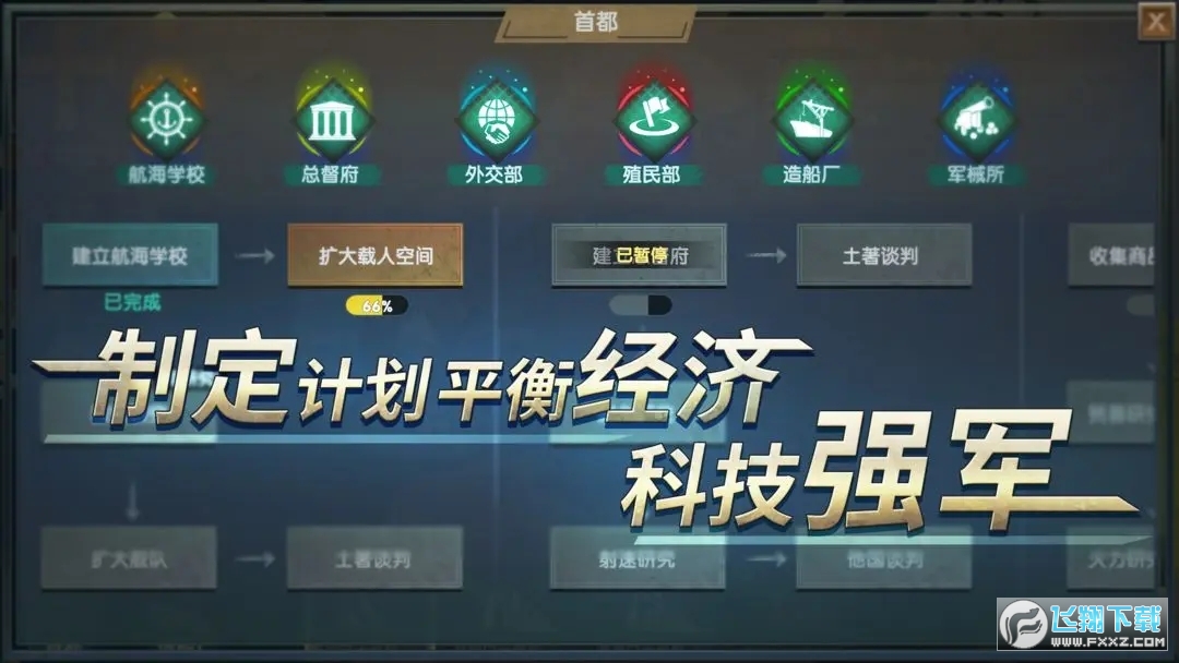 从小型桨帆船到巨大多桅战舰,可对不同战船执行“探索”“贸易”“战斗”任务。提高速度、容量、炮火等技术,找到最适合自己的升级方式。