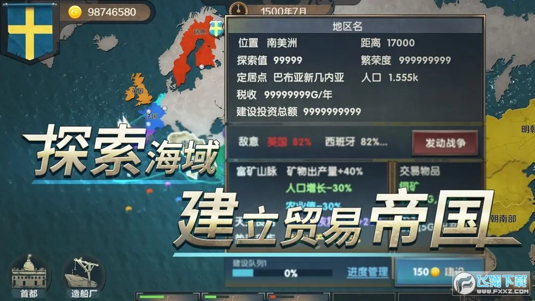 自1492年哥伦布第一次航海发现新陆地。作为沿海大国的新帝,你决定加入大航海时代的探索,扩张领土和影响力,想成为海上帝国驶出征服世界的第一艘舰船。
