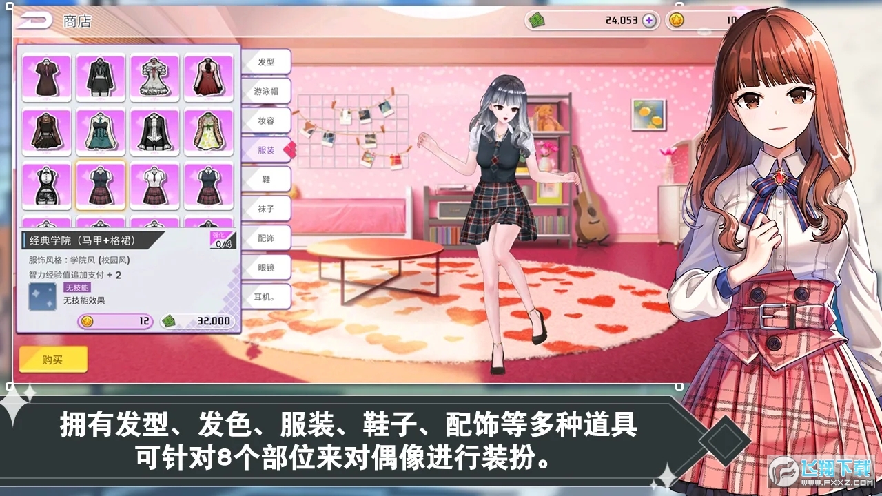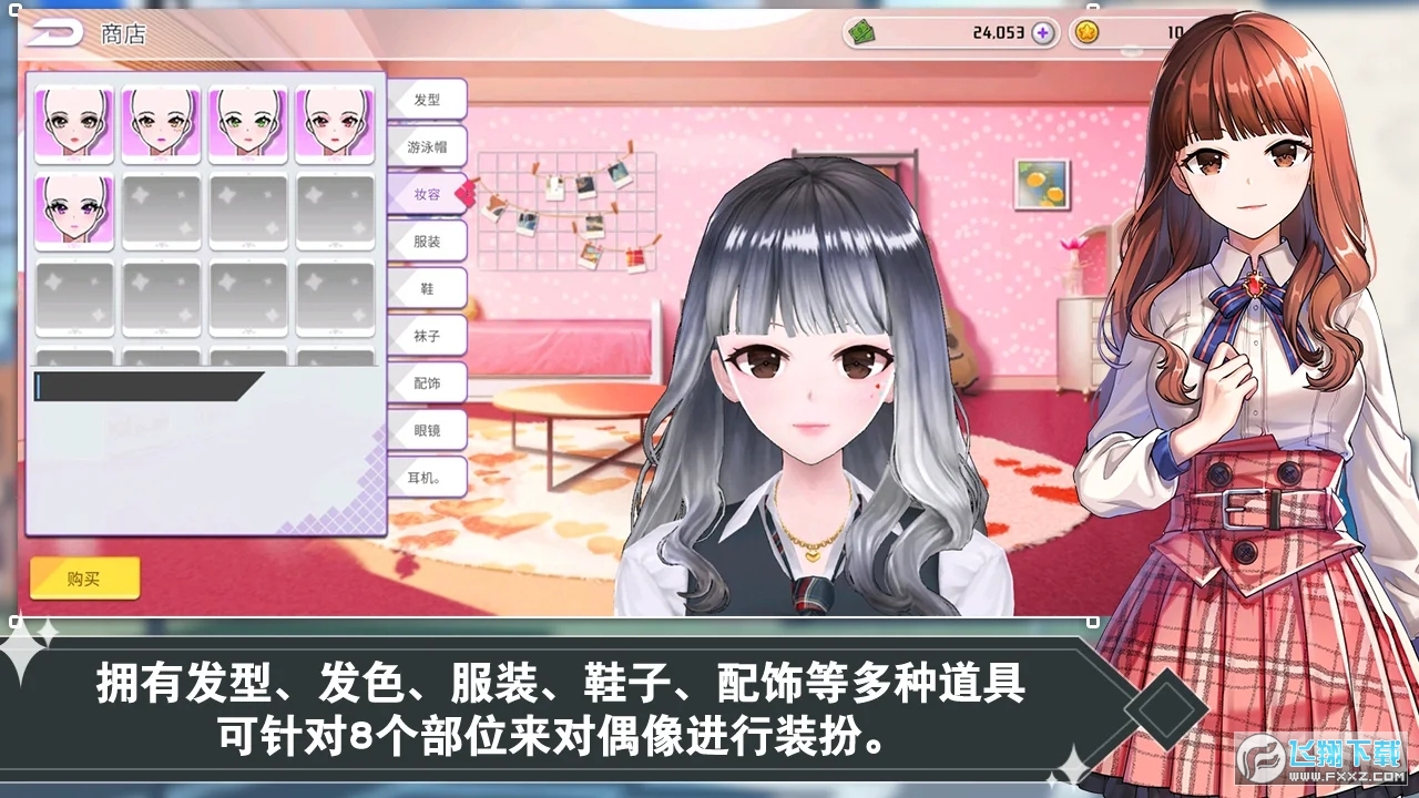 给偶像的服装、头发颜色、小饰品等各部位进行装扮!
