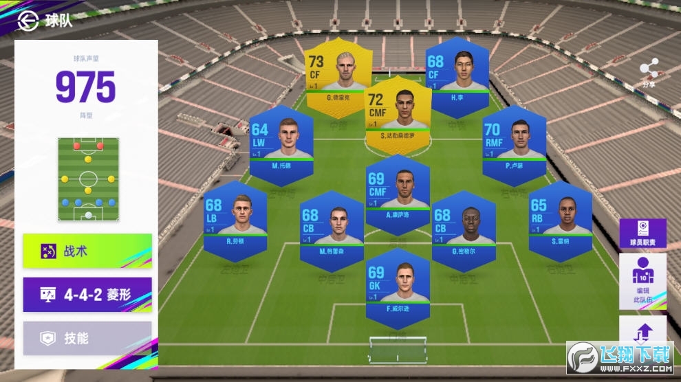 4、阵型搭配战术布置,组建最佳球队阵容。