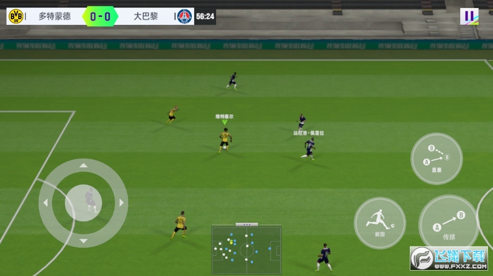 2、模拟逼真的游戏场景,游戏正版授权,拥有多达60多个国家协会和千名现役足球的真实面容,玩家可以自由体验;