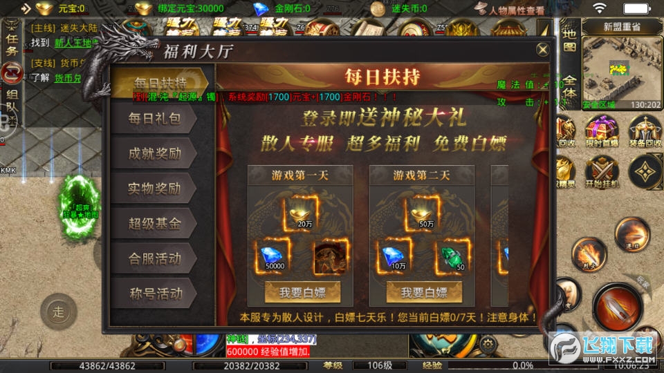 3、在线活动配备等你来领,众多道具资料拱手相送,冲级领神宠、签到送会员、离线自动刷怪晋级。