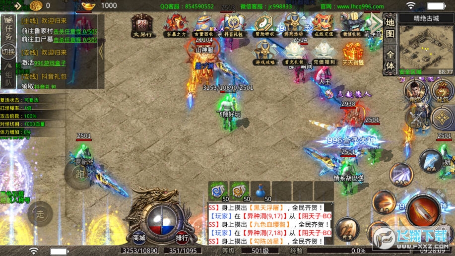 3、万人同屏竞技,升级快,无限元宝福利,平民也可以玩,打怪爆元宝爆装备。