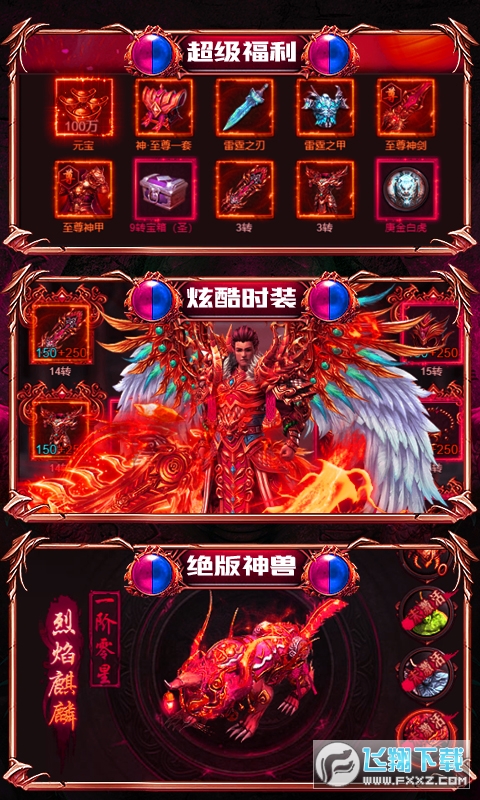 充值比例1:1000★上线送vip15,元宝*68888,金币*1888万,送绝版神兽-猛虎将军★创角直领1000元充值卡,再送道士绝版神兽---寒冰战将,每日免费无限豪送充值卡★首冲最高10倍返利,送绝版传世套装,次充双倍返利★精品福利一:BOSS爆率提升百倍,超爆爽不停★精品福利二:装备道具,永久真元宝无限回收★精品福利三:永久半价商城,极品道具五折享★狂狗双神兽说明双神兽--道士幻化兽(礼包码领取)和神兽(创角即送);送千元充值---礼包码领取