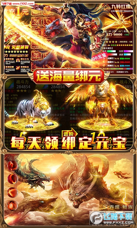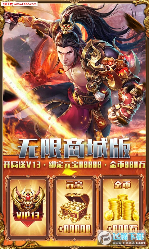 充值比例1:1000★创角送:满级VIP13、绑定元宝*88888、金币*888万!★开局送:免费首充:超值百连抽,极品橙武,酷炫翅膀,玩家超值大福利!★福利一、至臻特权:新增GM商城,海量进阶丹、装备碎片、狂化神石、金装打造石天天特价低至1元宝!★福利二、首充2倍1:2000,充值即领返利不停!★福利三、免费加速:全图增加5倍移动速度,3倍战斗体验,10倍刷怪爆率!