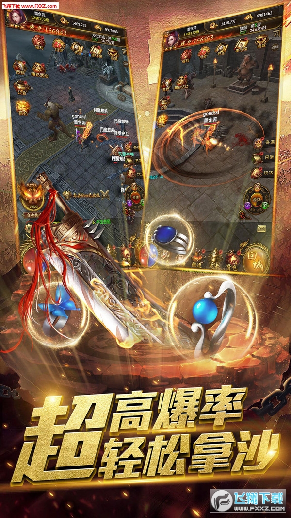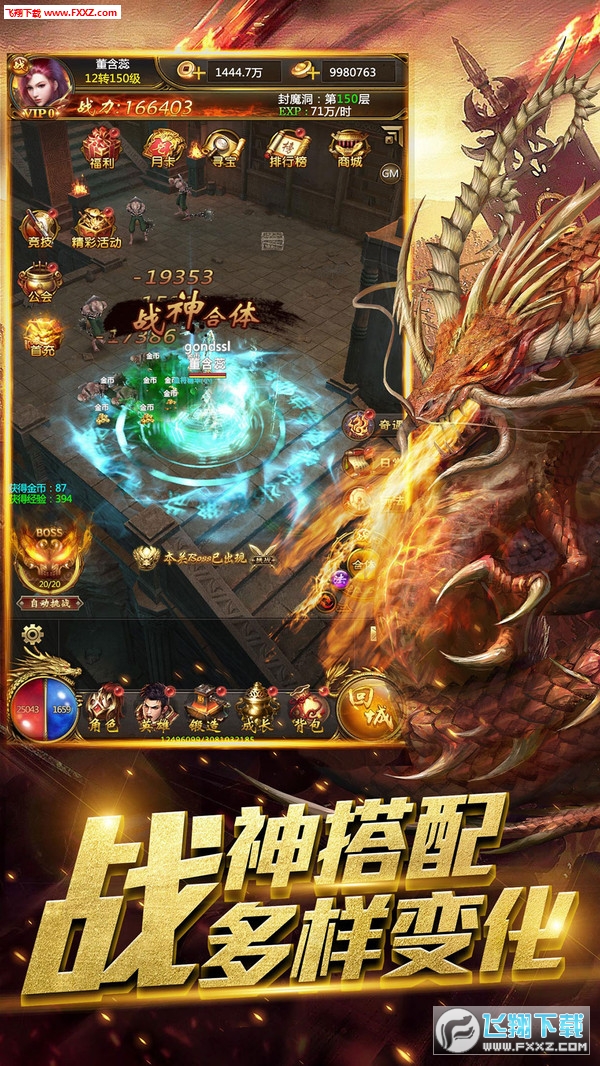 2.强力战神、神炉锻造、寻宝系统、祝福翅膀……海量玩法激爽PK,特色活动惊喜不断;