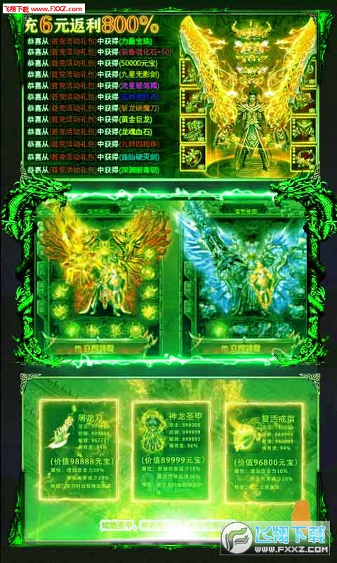 1,上线赠送vip7、元宝18888、绑元88888,金币688w!