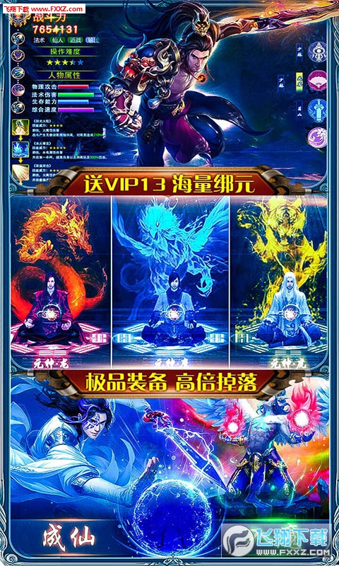 《御龙传奇》是一款大型3D仙魔风格ARPG手游。精致的美术画面通过炫酷3D效果,为玩家呈现了一个人魔大战的战场。新版本大优化,价值188元首充白给,VIP礼包白给,加入全局跑图+战斗3倍加速、掉落爆率10倍提升改动,并加入无限紫晶、海量元宝玩法,上线更有满级VIP13+88888绑元+888万金币,给你超爽体验,畅爽开局。配合精彩玩法供玩家探索,踏上君王之路。全自由化的PK对抗,极致激爽的战斗对决,将最大限度满足你对仙魔手游的所有幻想!