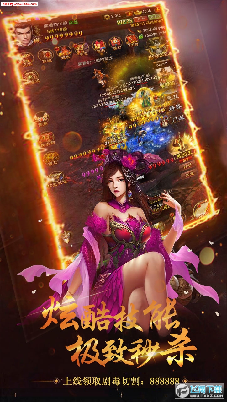 2.开局赠送38888元宝,888万金币,各种福利欢乐无限,精彩放送!!!