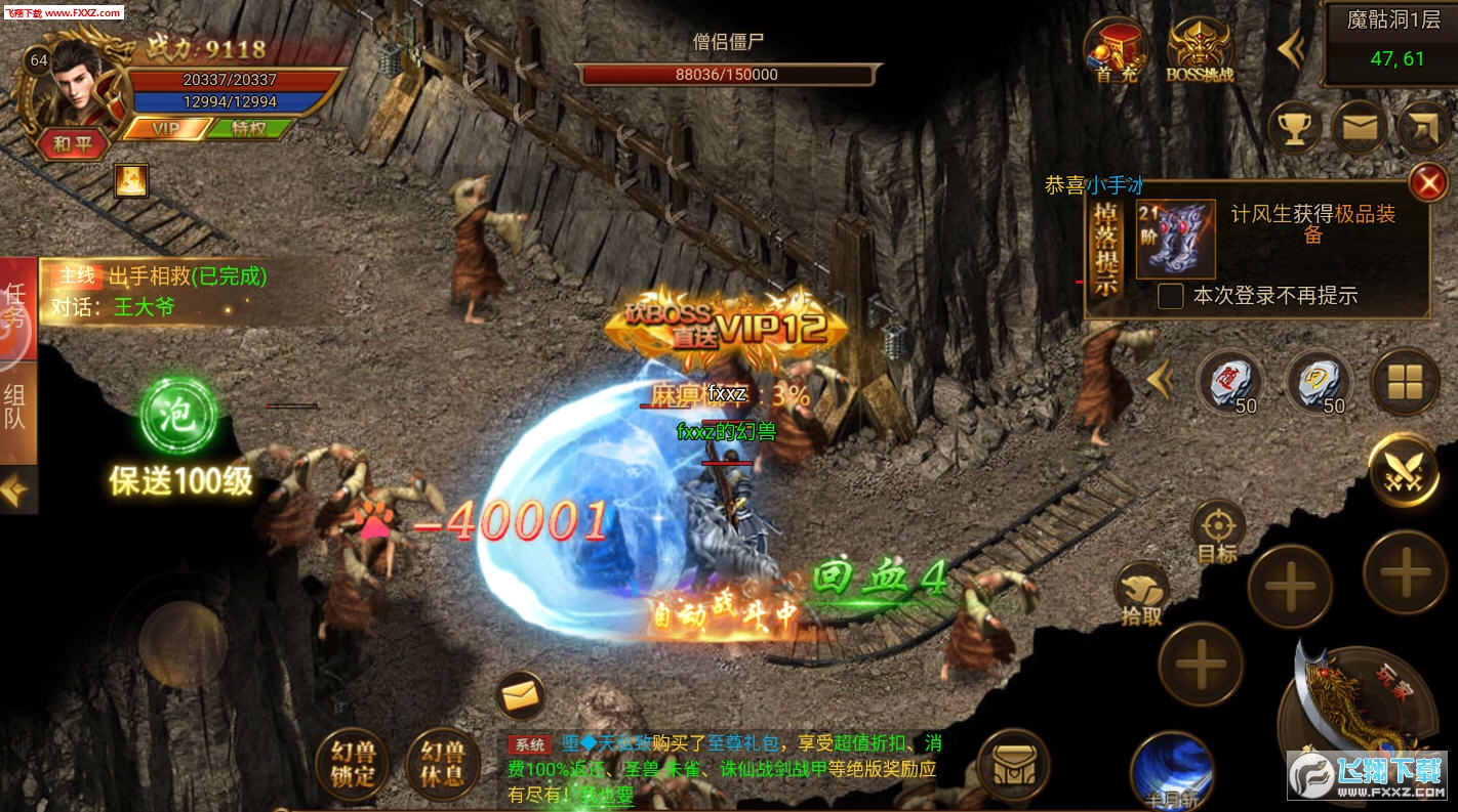 2、超高爆率可以让你不在为装备烦恼,极品装备全身十分轻松,后期你也可以随便单挑boss!