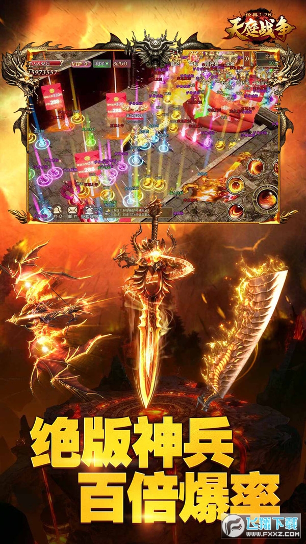 《天庭战争》全新单职业高爆神装复古传奇手游火爆来袭!经典的传奇游戏玩法,超高清的,经典三大职业任你挑选,复古传奇画风,各大boss等你来击杀。极品装备等你来解锁,个性外观随意打造,自由搭配。超多副本任你刷新,神兽坐骑伴你一同成长,大量副本随意刷新,邀请好友同台对战,默契配合,共同完成副本试炼。