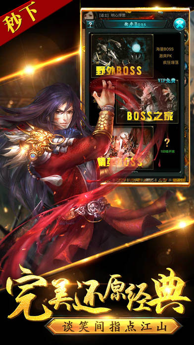 变态私服、怒刷BOSS:狂爆神装,稀有神装唾手可得,保值不掉价。神装加身,主宰沙城,成就传奇霸业!