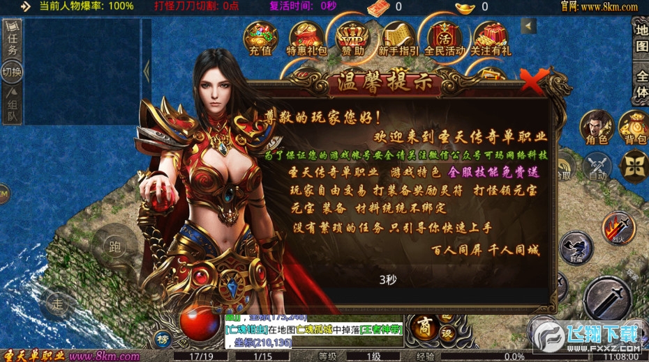 1、玩法多样的传奇战斗手游,自由pk不封速度,职业自由选择;