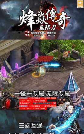 烽焱传奇无限刀安卓版是一款非常火爆的传奇,还原端游传奇经典设定,经典三职业提供选择,超高爆率加持,华丽的技能特效全屏释放,PK更爽!喜欢的小伙伴赶紧来下载吧!