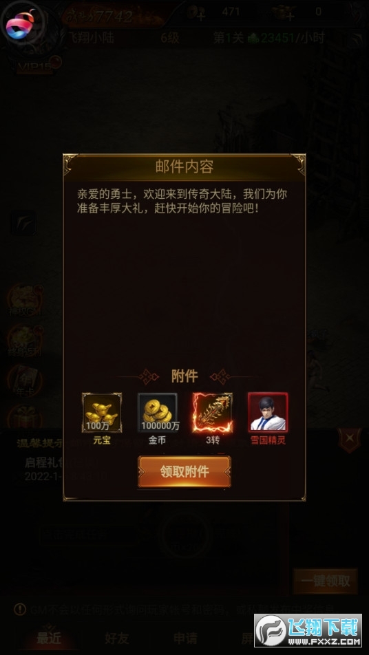 2、新手登陆可以免费领取超多经验和道具以及稀有装备,升级更快速。