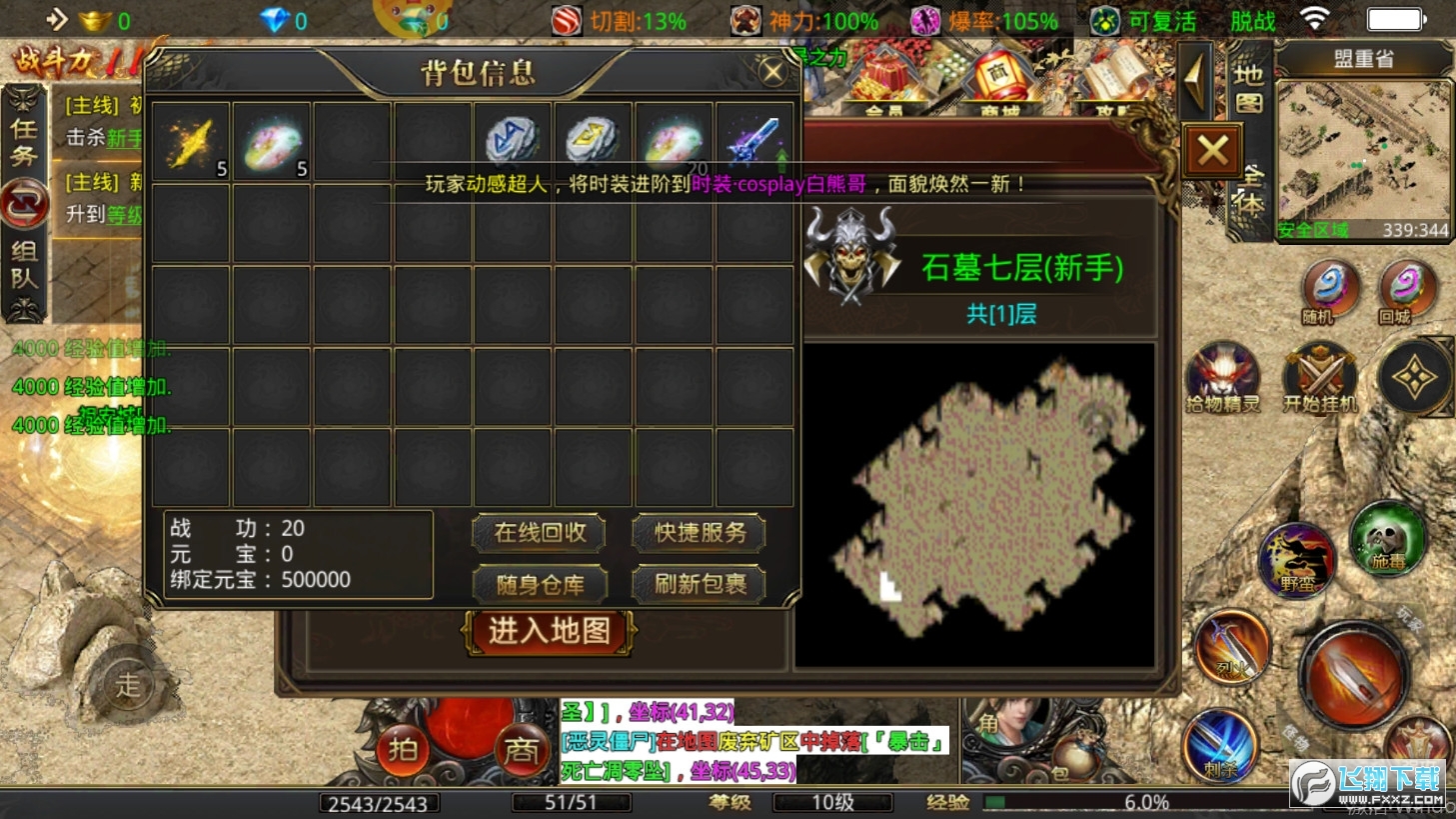 4、装备爆率度全面升级,免去玩家一晚上操作只换取一件装备的辛苦,祖玛套装遍地都是。