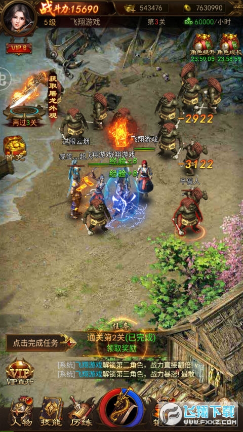 1、上线送VIP8直升,元宝488888,专属武器时装“屠龙宝刀”;