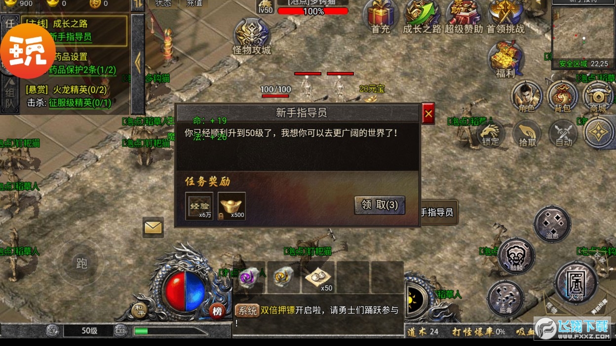 2、轻松,装备保值 装备道具直接掉落,非绑可交易!离线挂机轻松体验。
