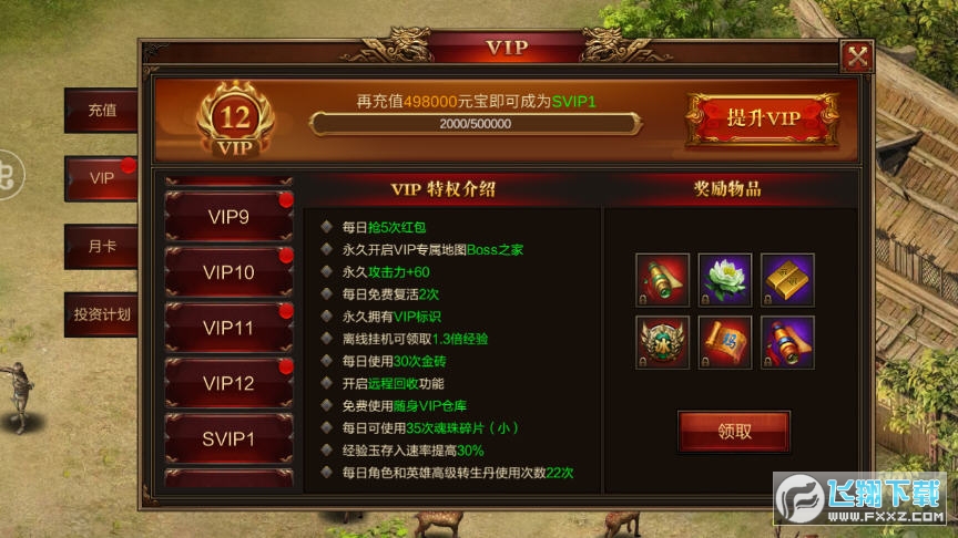 3、上线领取神权GM功能,开启后商城统统1元宝购买,每日登录免费领取充值卡!