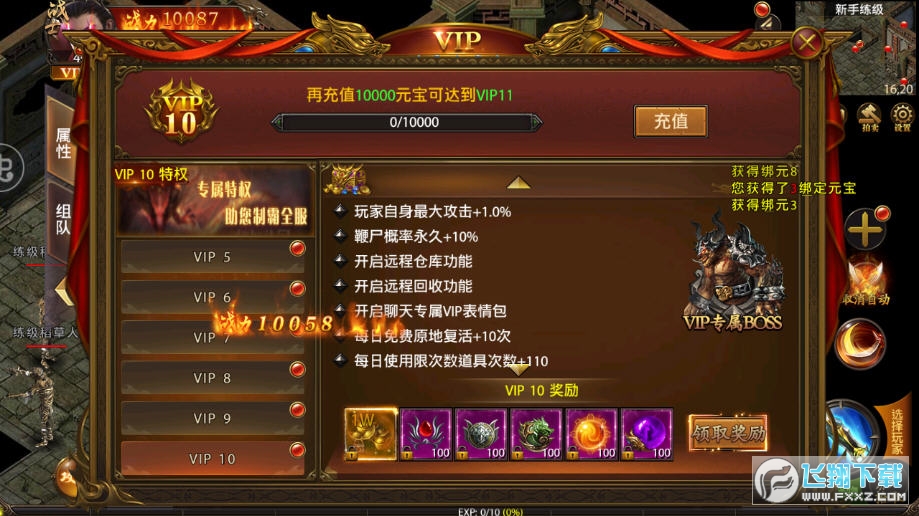 ★上线赠送VIP10,绑元*88888,金币*500W(上线就有);