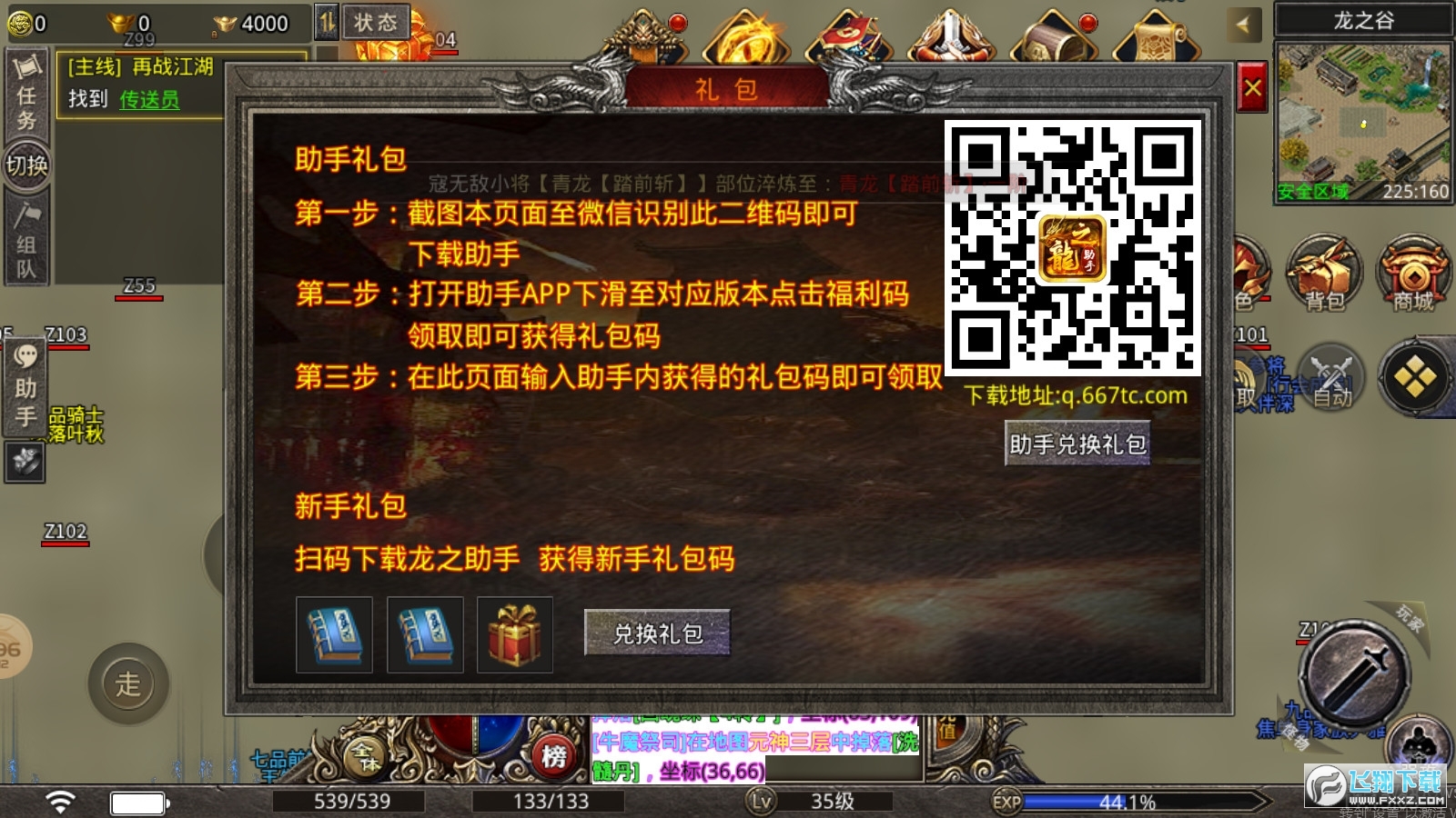 游戏上方一排NPC是特殊装备:铭文斗笠、复活进阶、盾版进阶、法宝进阶、远古神兵,有能力的玩家可以去升级,全部升到满级后人物的能力是成倍的提升,打怪,PK都会更上一层楼。每日、每日副本、秘境BOOS,这都是玩家必进的地方,装备元宝全部爆出。