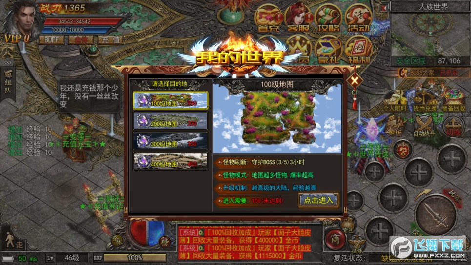 2、可以在传奇手游中感受万人攻城的壮阔场景,高爆率,可自动回收装备,超爽爆。