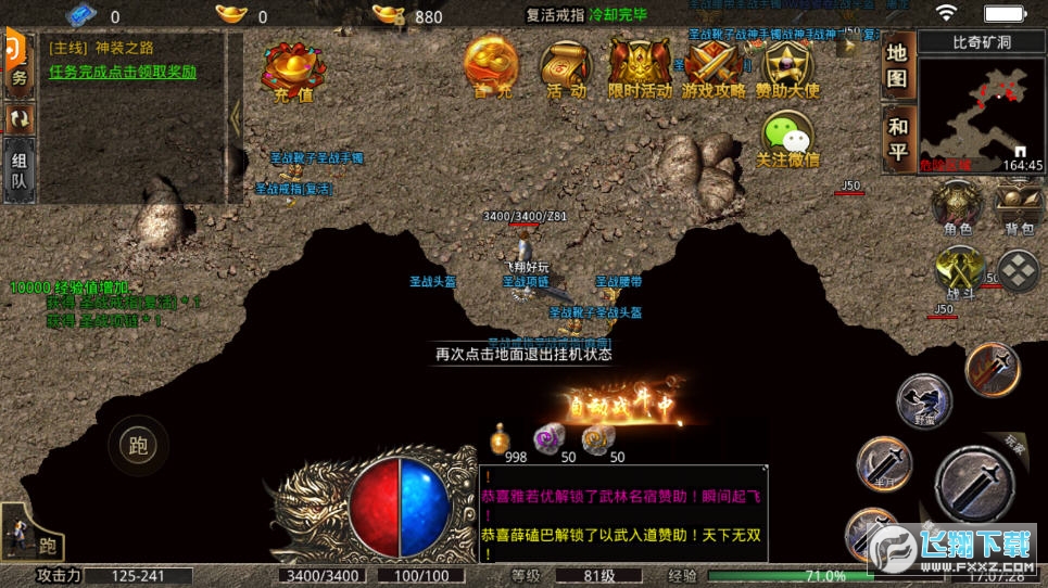 激情四射的玩家对抗玩法,不仅仅有单人pvp模式——即时战斗挑战你的心跳,并且胜者可以获取败者的武器装备,更有万人同服对战,壮观场面震撼你的心灵瞬间点燃你的热血,十年再次相遇,这次你要开启属于你的传奇么?赶快下载试试吧!