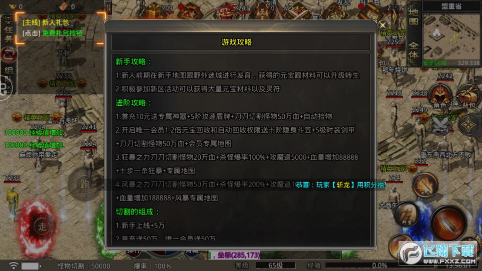 ★首充10元即送专属神器+5阶攻速盾牌+刀刀切割怪物50万血+自动捡物。