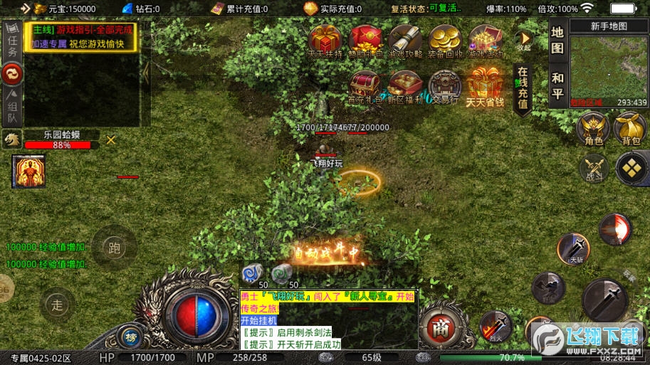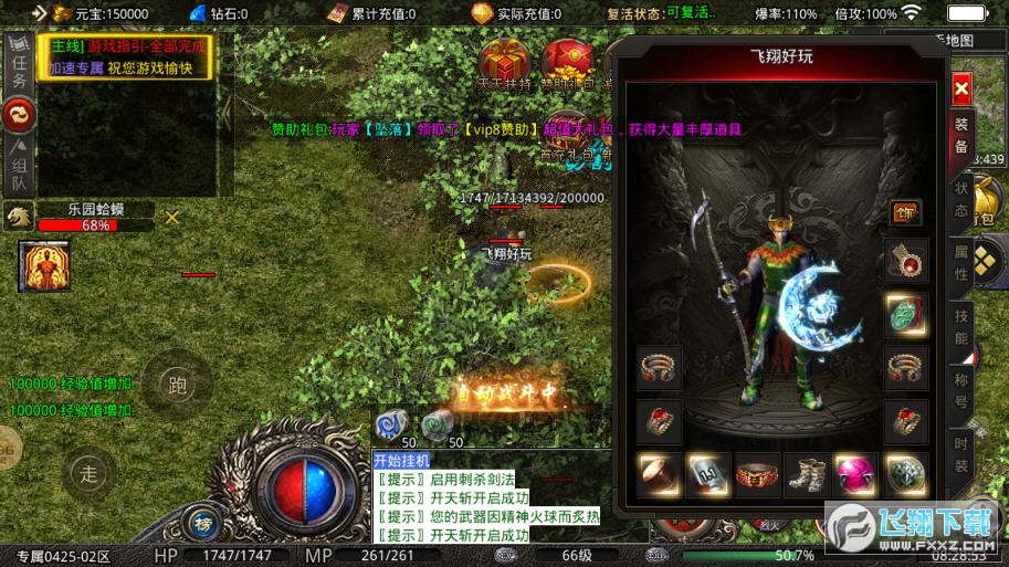 4、自动挂机,0元充值打遍全服BOSS,光柱无限爆,散人不花钱轻松玩终极。
