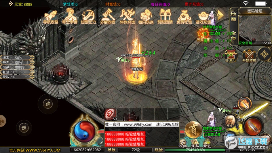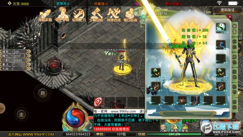 2、本服充值货币怪物都能爆出,散人有时间也可以全部免费获得,领完回馈送的货币优先升级切割,转生,称号,攻速等,基本上一路通杀,装备好打的很。